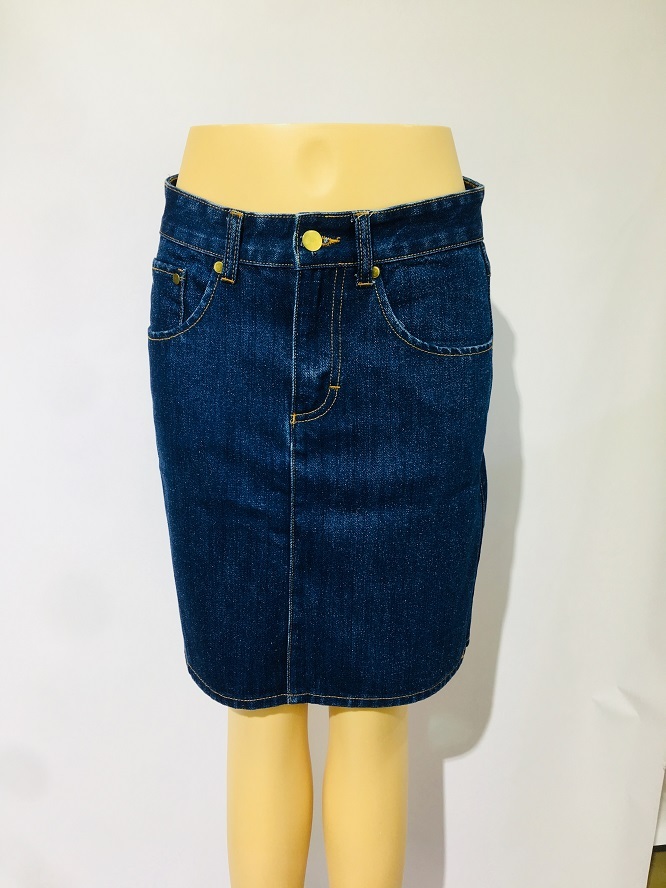 Best Women Slim Fit Denim Skirts Jeans Factory Dress in Dark Blue Fabric: 98%Cotton, 2%Elastane